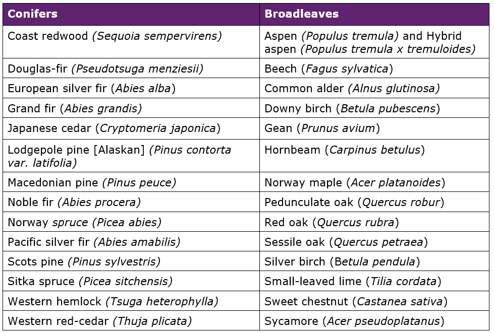 Table 2. Shortlist of productive species for Scotland (listed alphabetically)